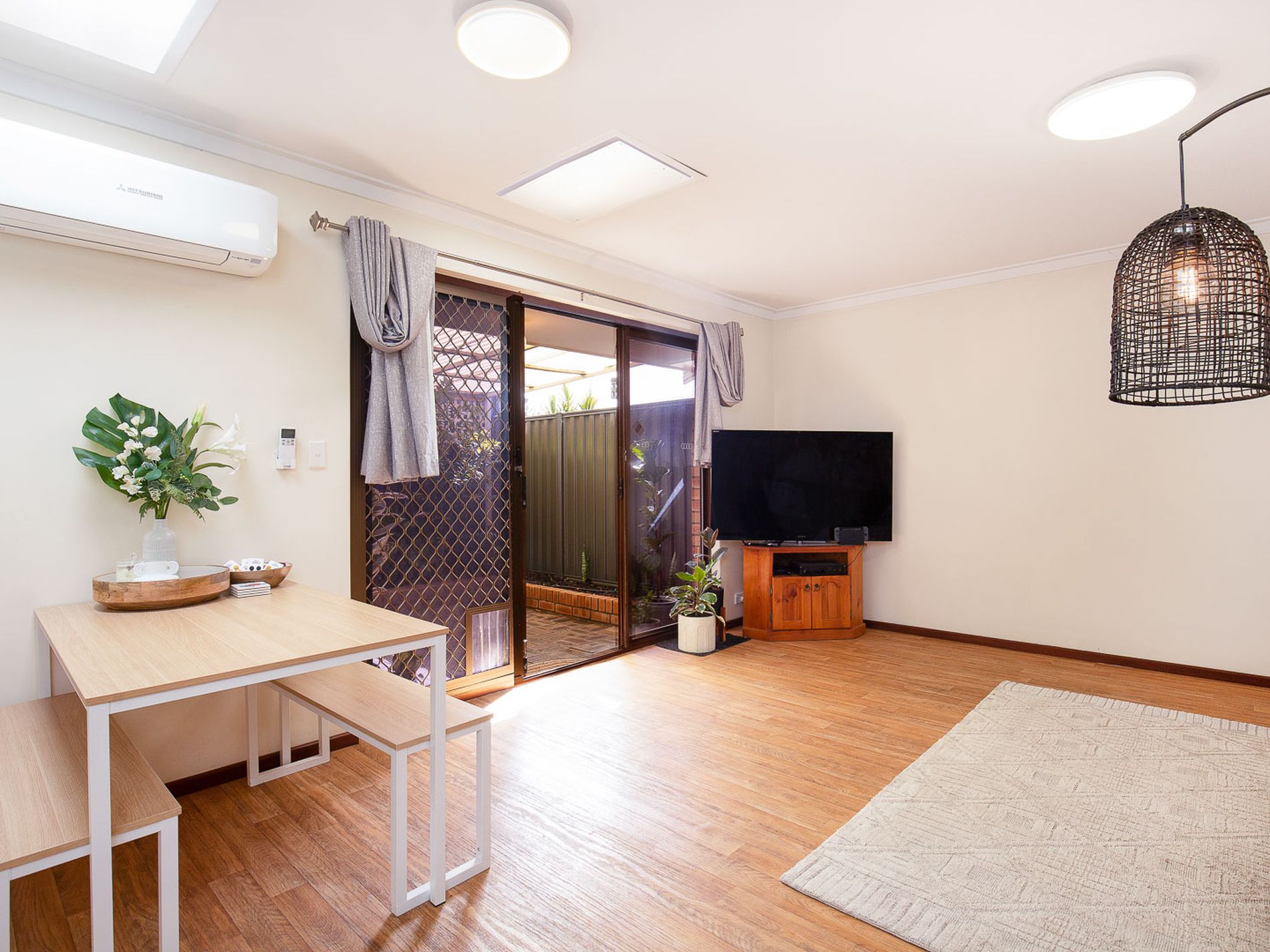 This delightful two bedroom villa is situated well back from the street, just a short stroll to the nearby cafes and shops, tucked away perfectly and features large living and a private homely feel.